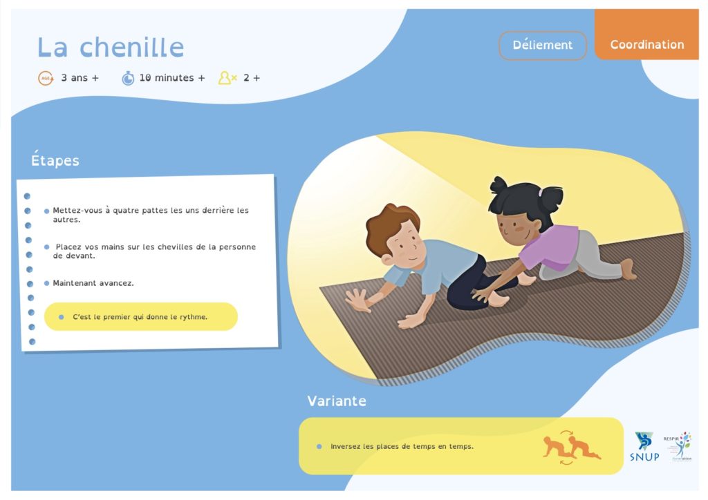Mes défis en activité physique 1, 2, 3, 4… Objets sur moi Vite à la maison Parcours de l’otarie Le miroir La chenille Parcours de la statue Retour à la page « Ressources pour les parents »